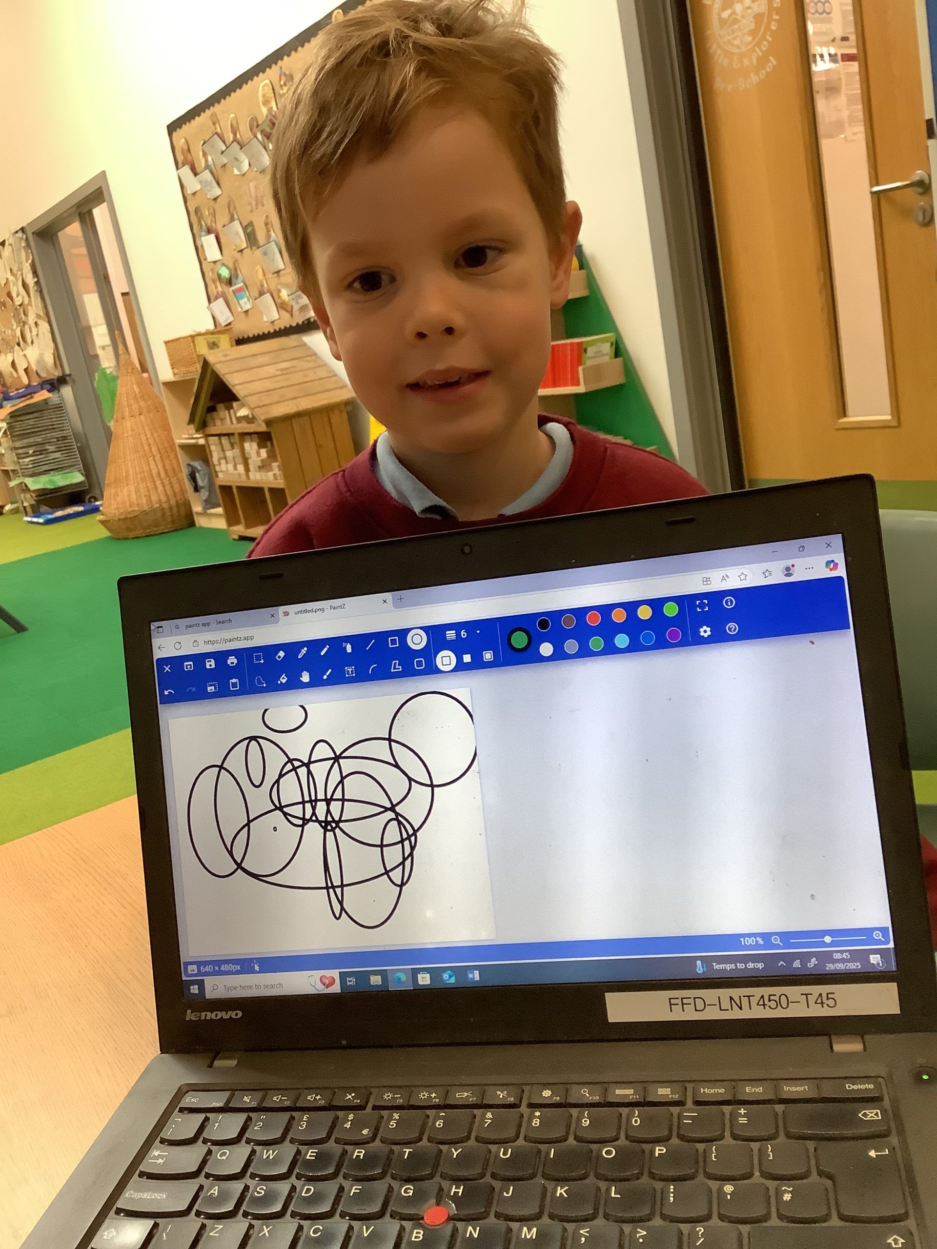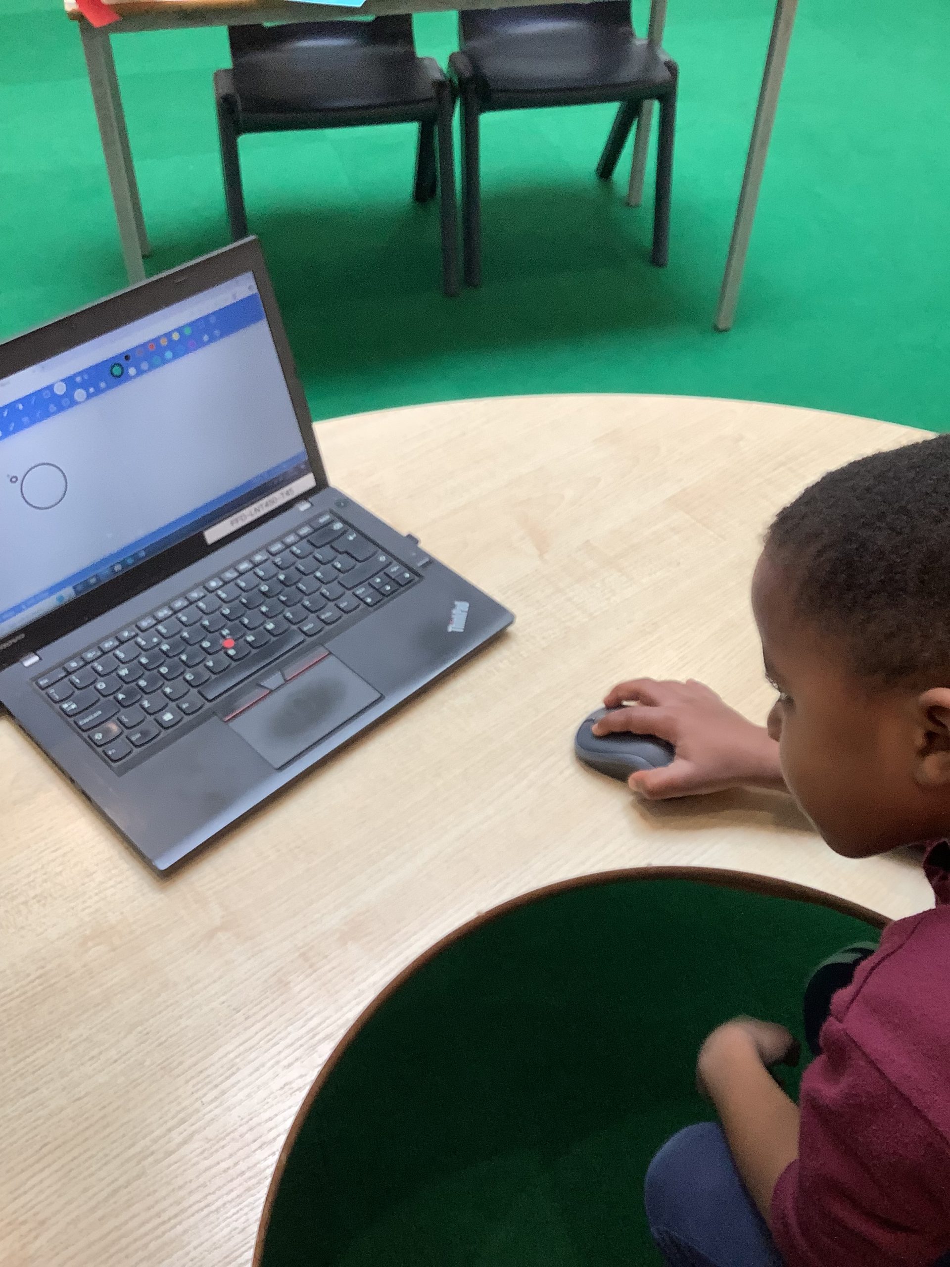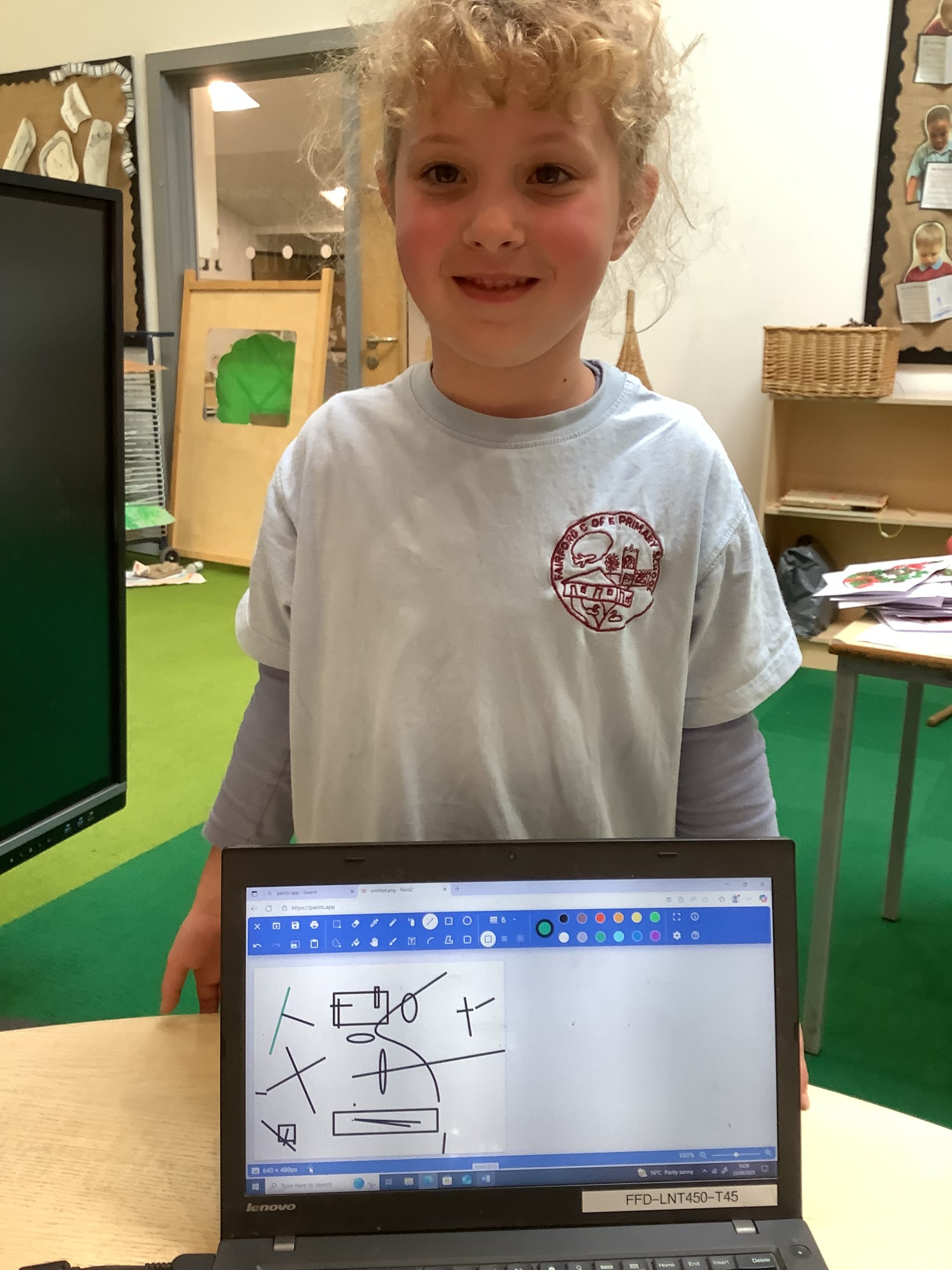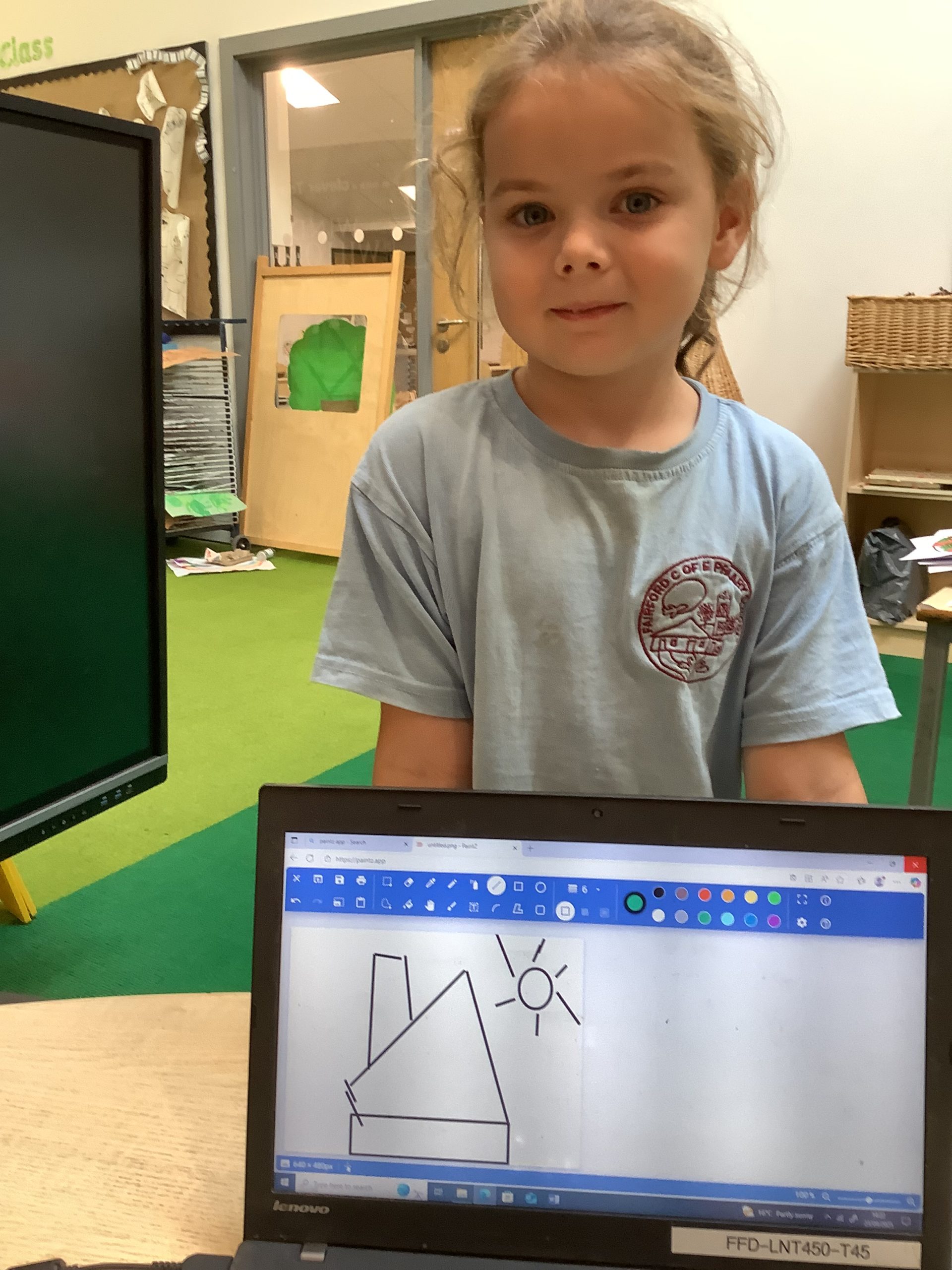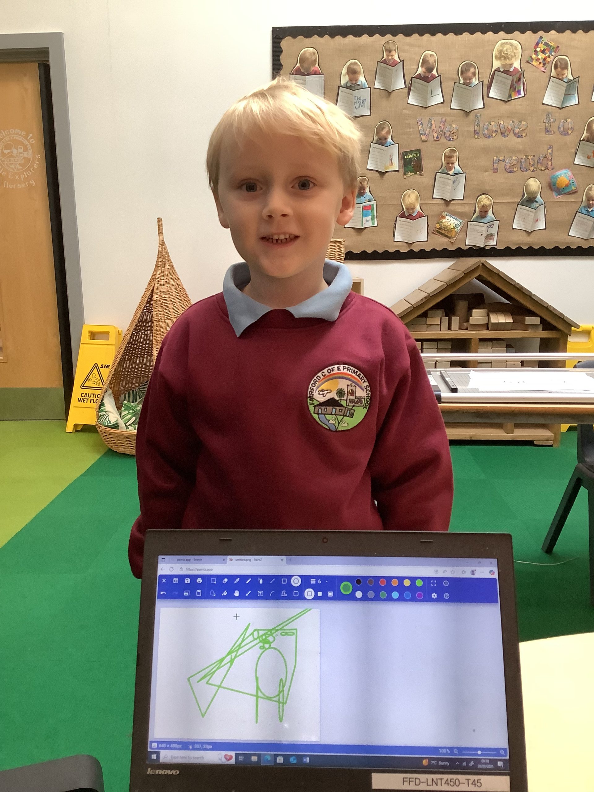 Cherry Class typed their names onto a laptop using a keyboard and used a mouse to create a shape picture in ‘paint’.