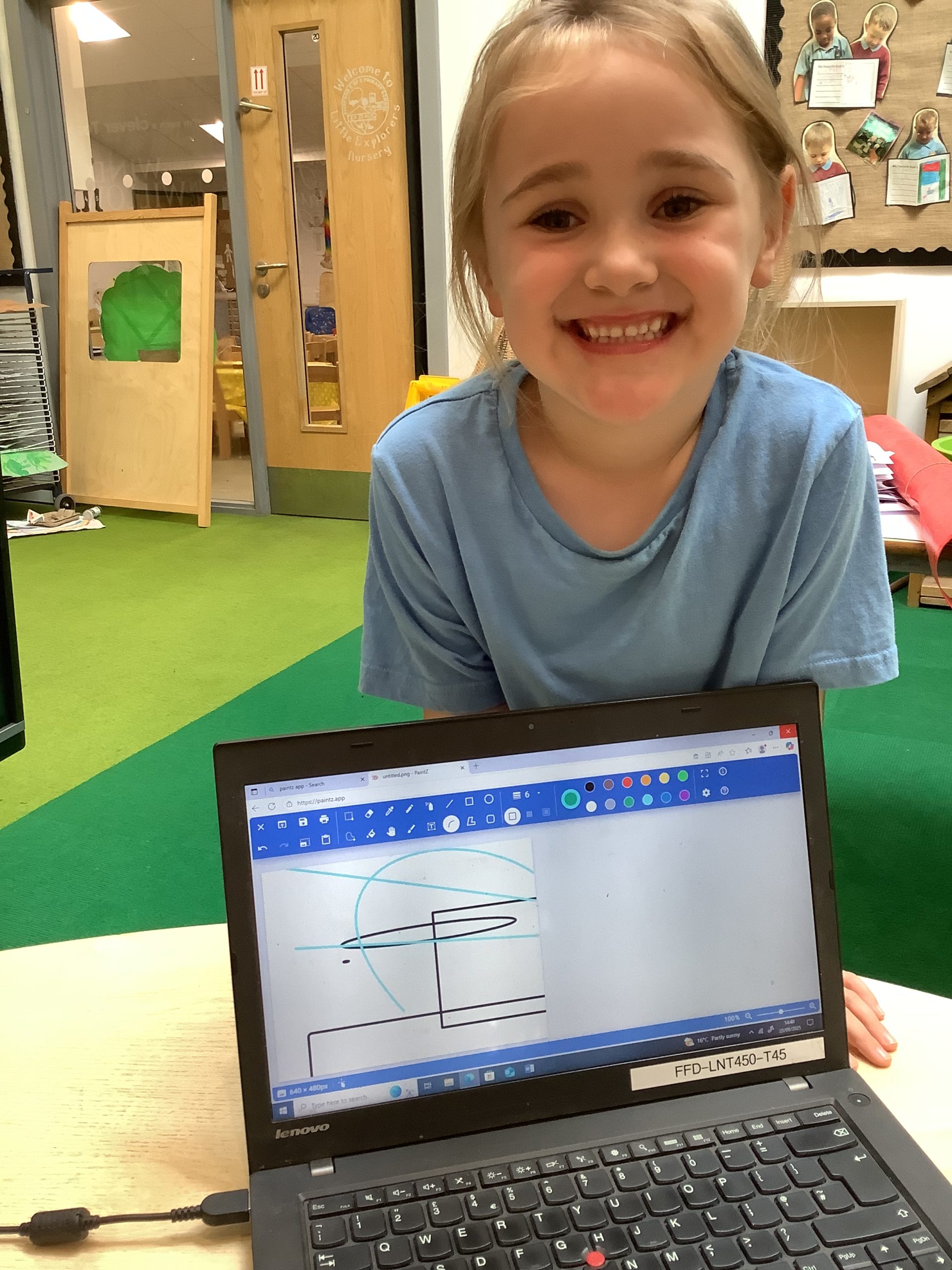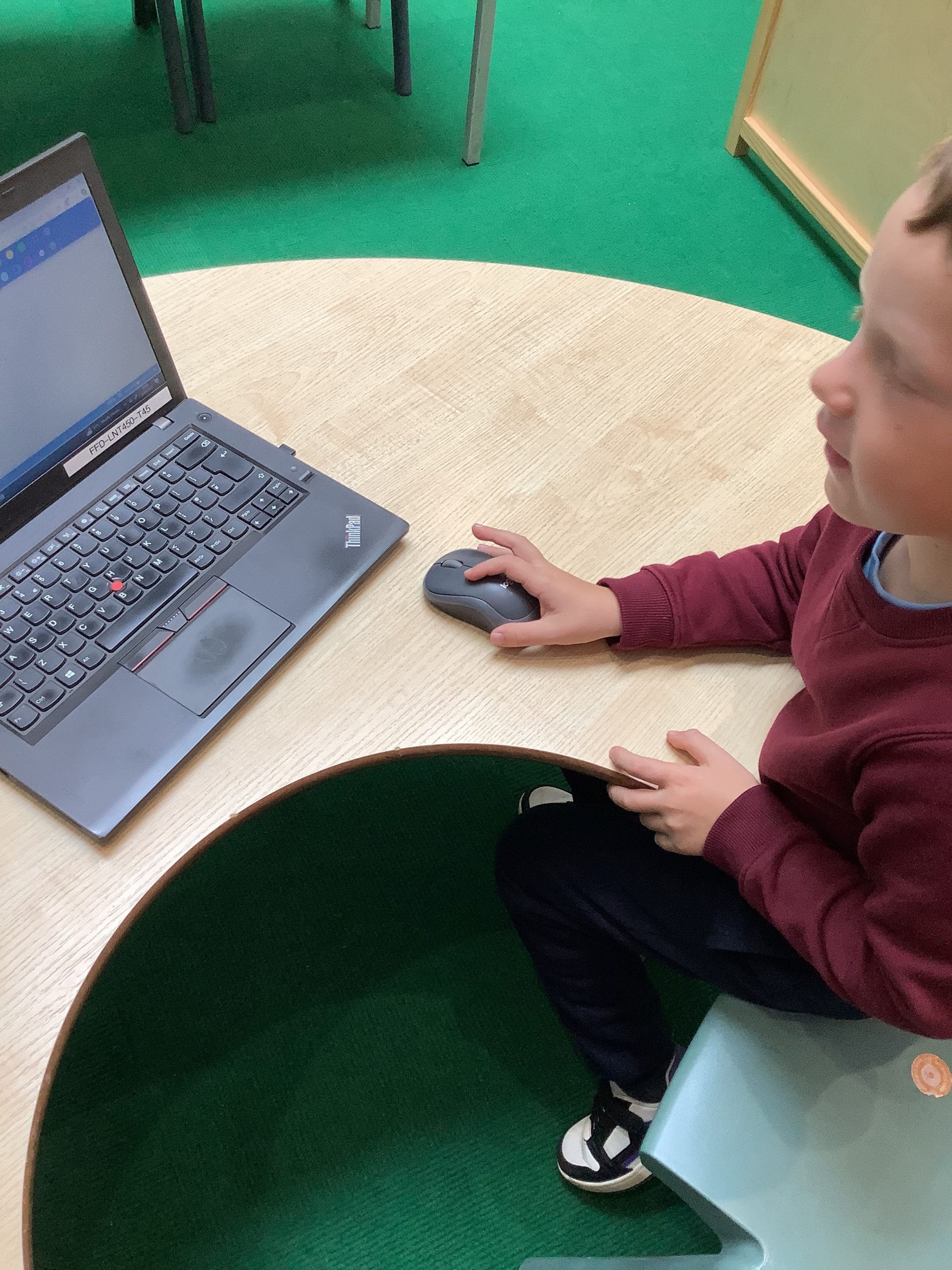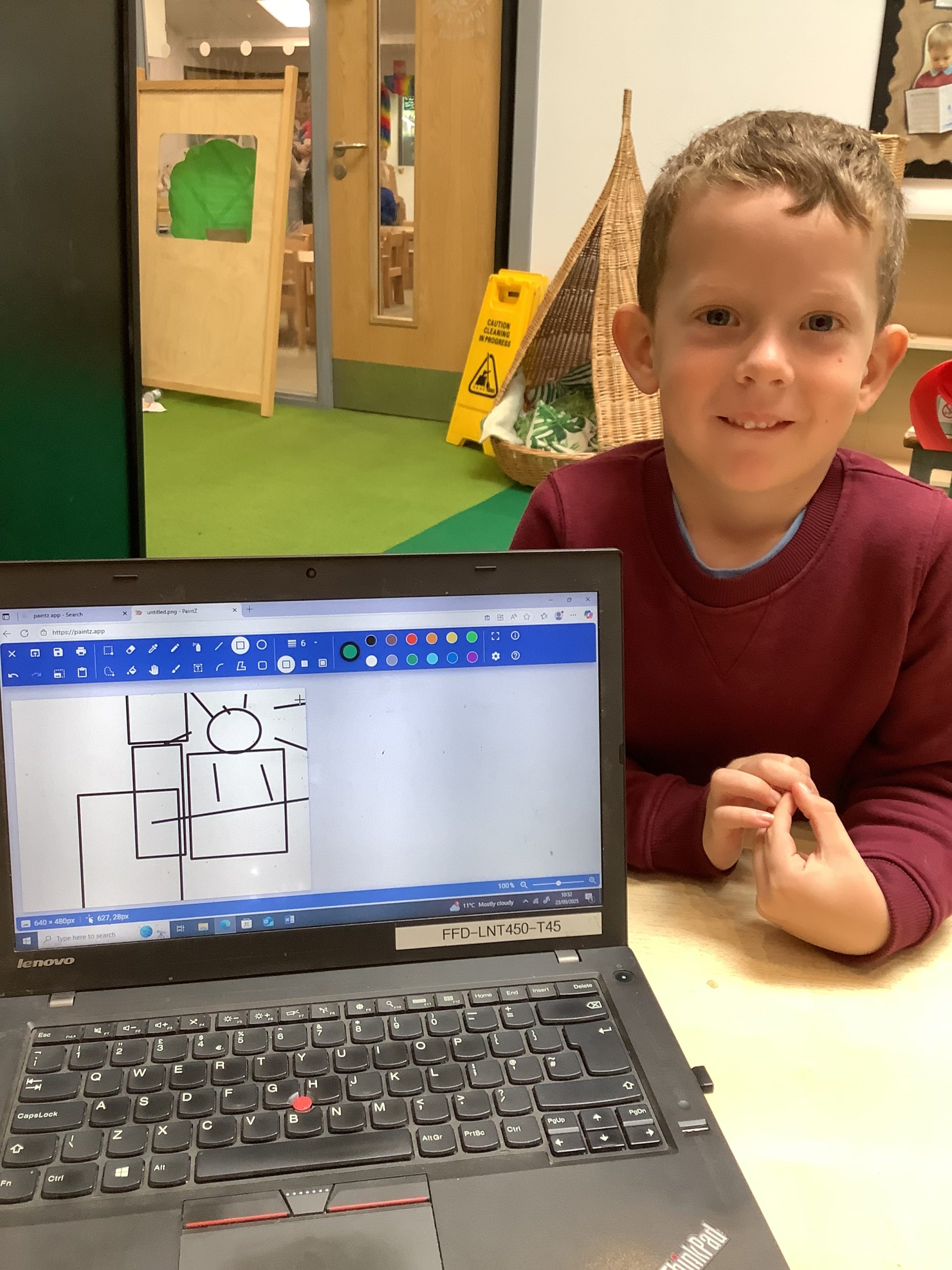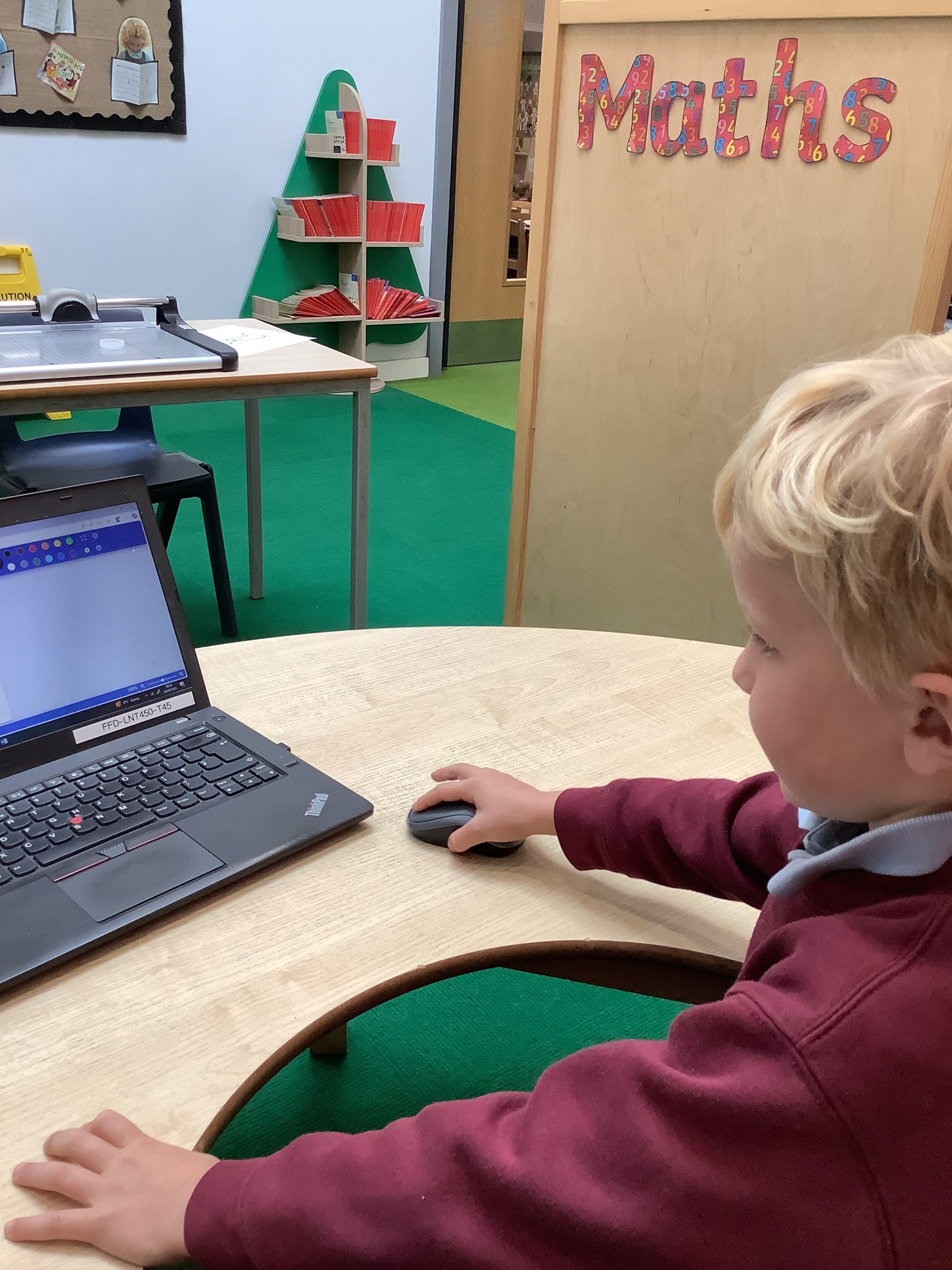 Cherry Class typed their names onto a laptop using a keyboard and used a mouse to create a shape picture in ‘paint’.