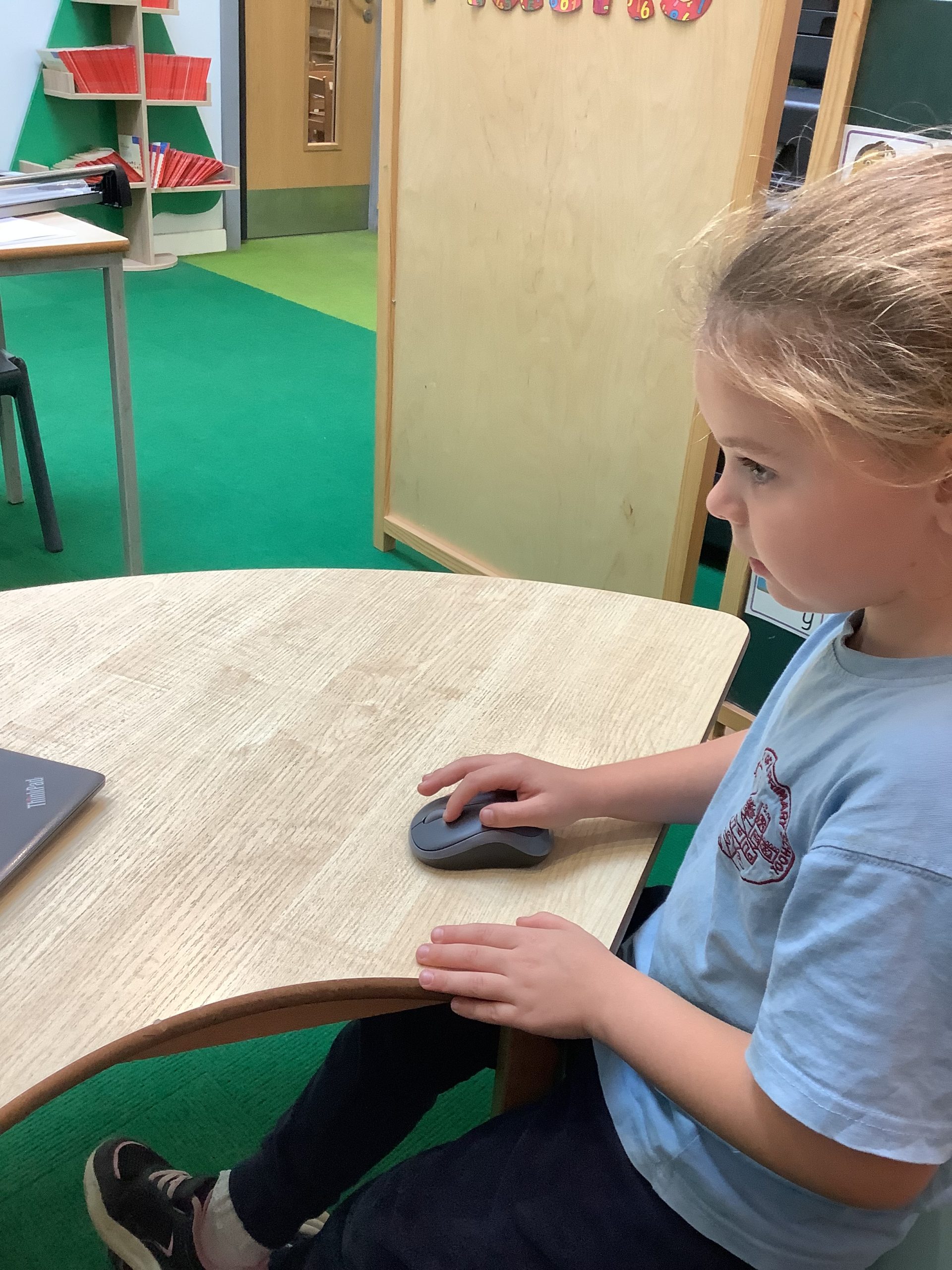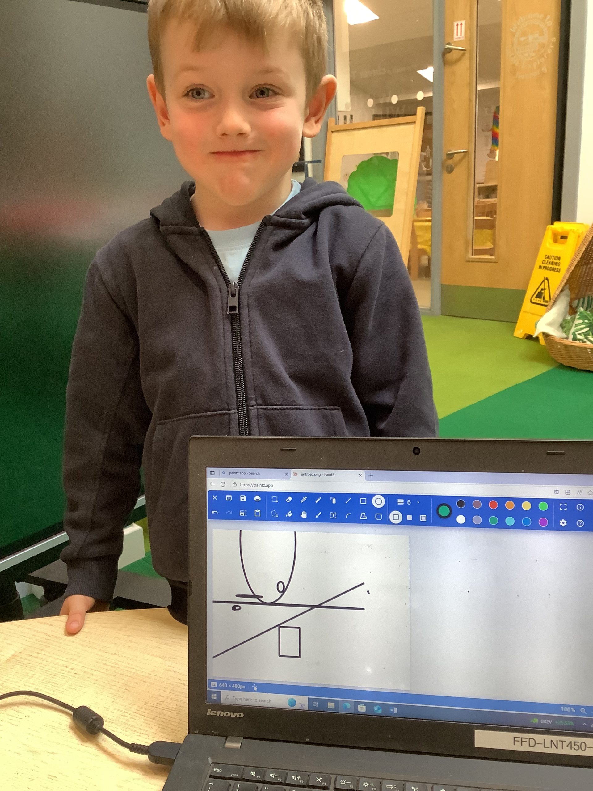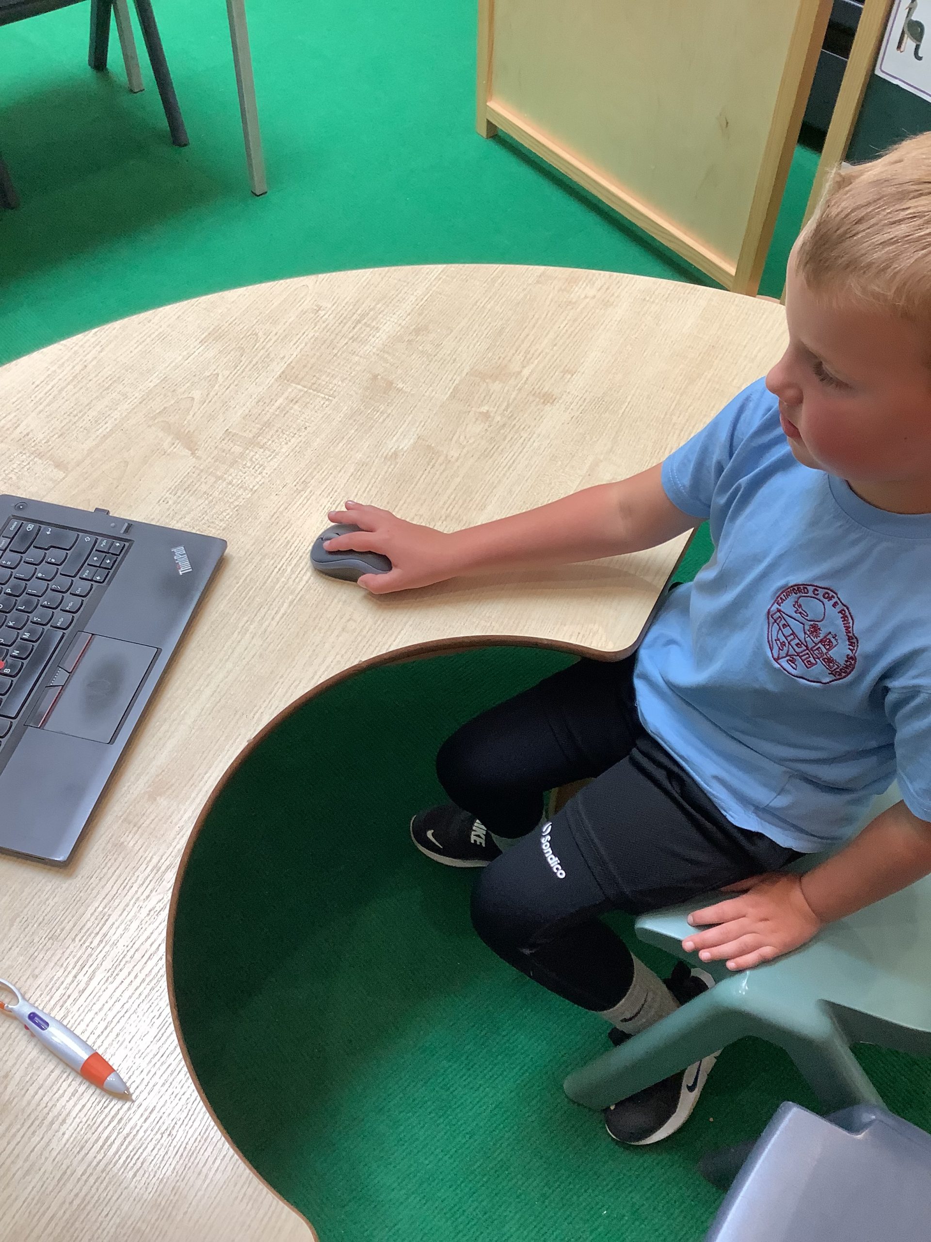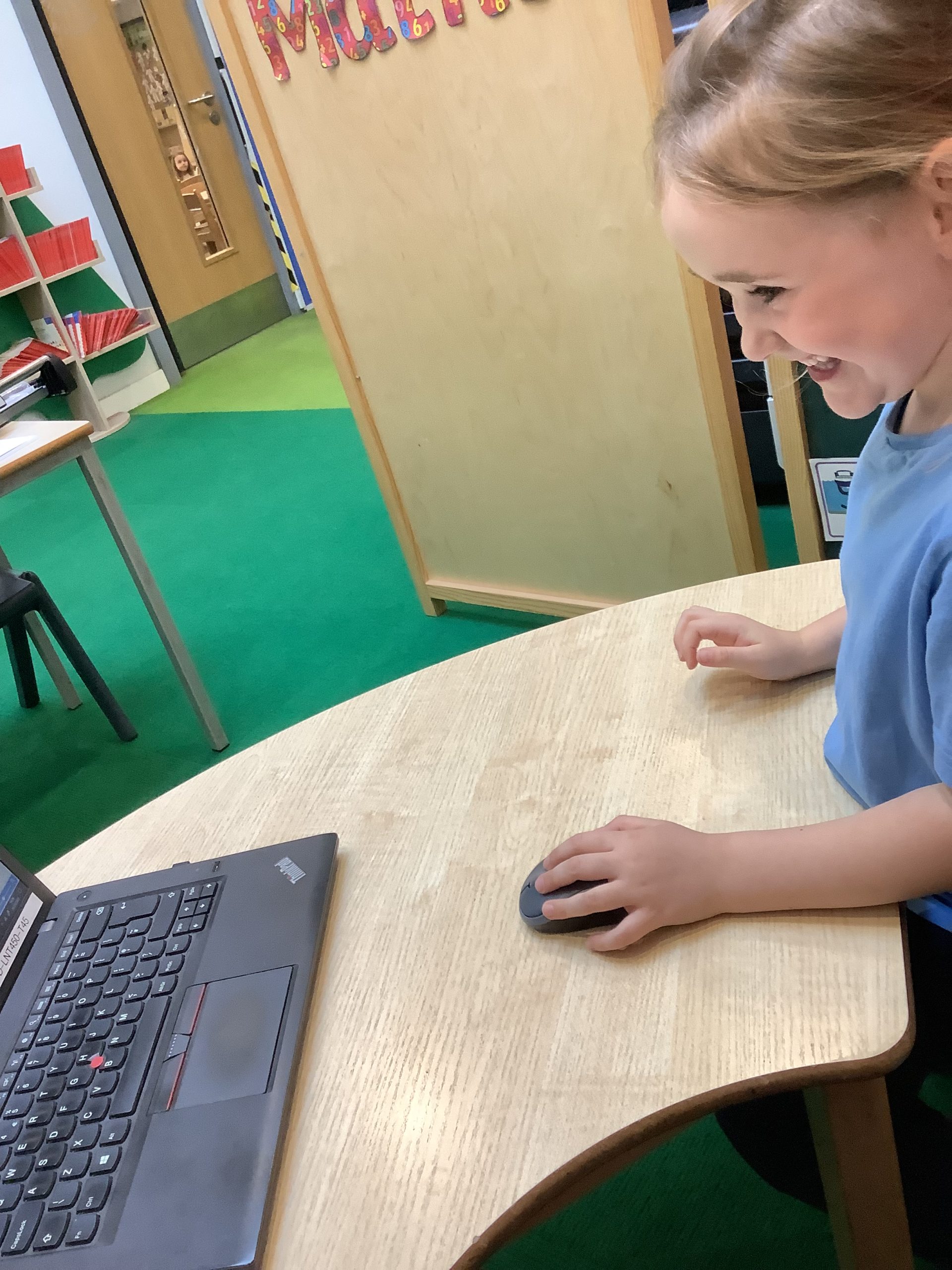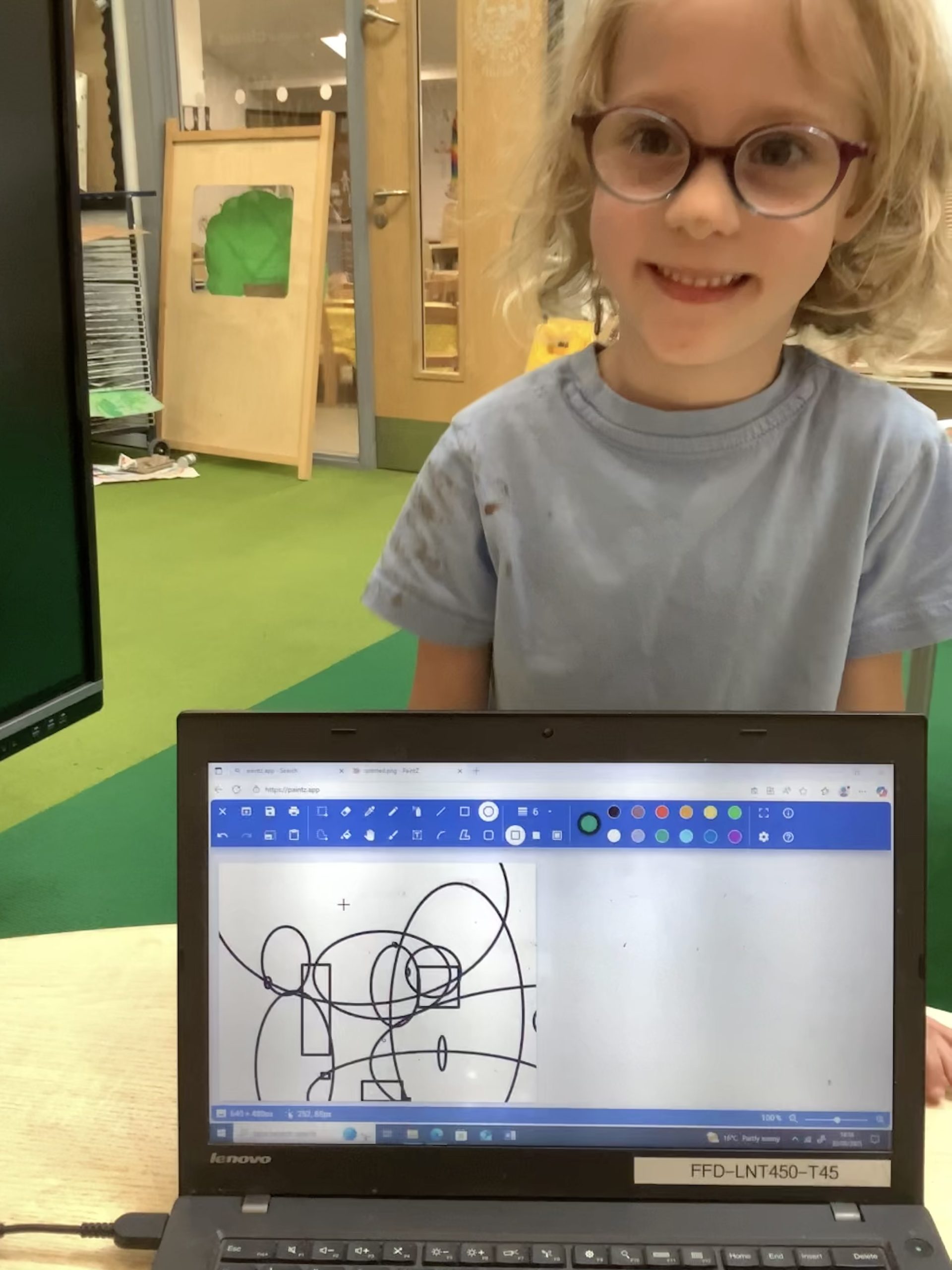 Cherry Class typed their names onto a laptop using a keyboard and used a mouse to create a shape picture in ‘paint’.