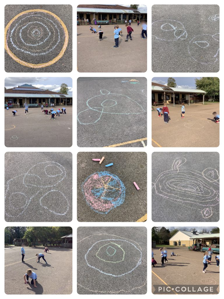 In Art this term we have been exploring the work of artists Robert and Sonia Delaunay and Molly Haslund. We have been exploring shape, spirals and patterns. The children enjoyed going out onto the playground where we worked together to create large pieces of art.